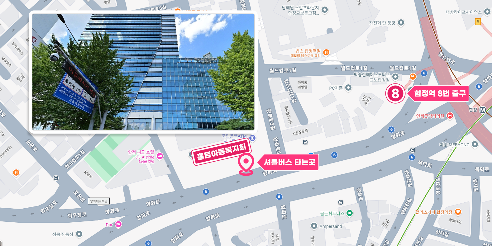 합정역 8번출구 120m전방 홀트아동복지회 앞